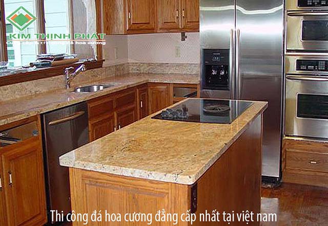 Da hoa cuong bep 2.001 mẫu đá màu vàng đậm sử dụng cho bếp